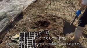 夏野菜はもうすぐ、踏み込み温床のなかで苗をつくります。