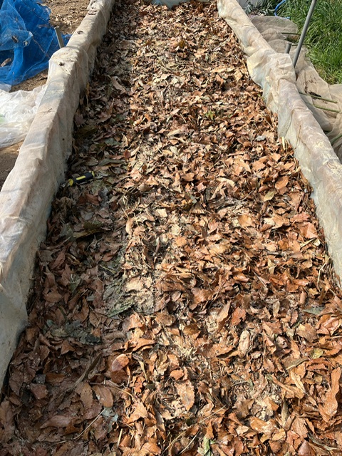 今回は岡山から700キロ以上離れている茨城の畑の様子を紹介します。2月に踏み込み温床作りをしました。発芽の三大要素である、酸素、水、温度。その中の「温度」を確保するために必要なのが温床です。電気を使わず、微生物が落ち葉を分解する時に発生する温度を利用します。種の発芽を助けてくれます。 人と、植物と、微生物の共同作業になります。まず厚めのコンパネで枠を作ります。うちは内側に断熱材を入れています。集めて置いた落ち葉。