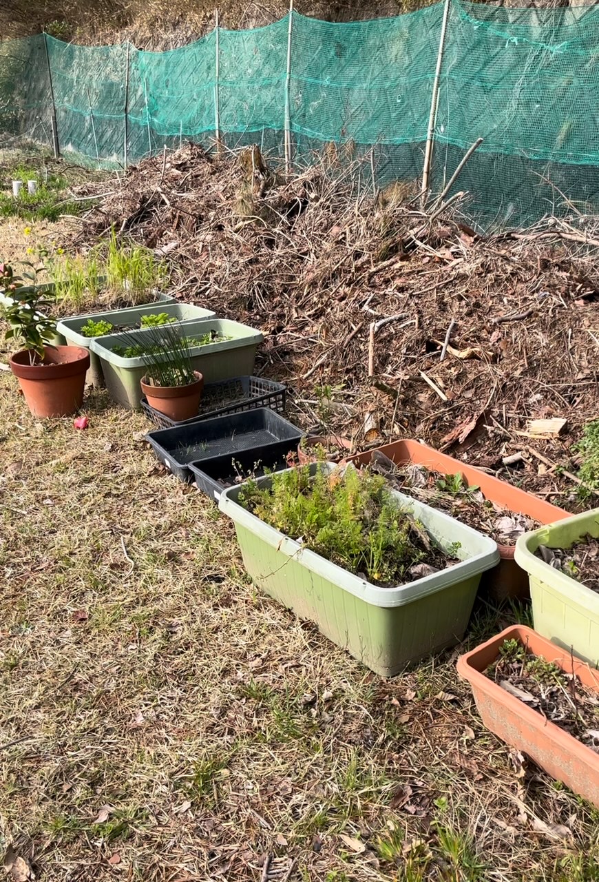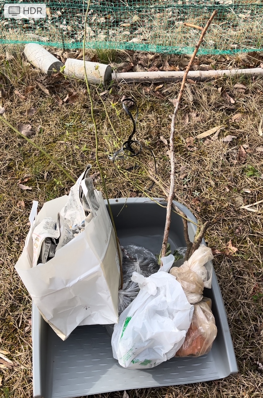 積んでおいた枝葉の嵩も低くなってきて良い感じです。