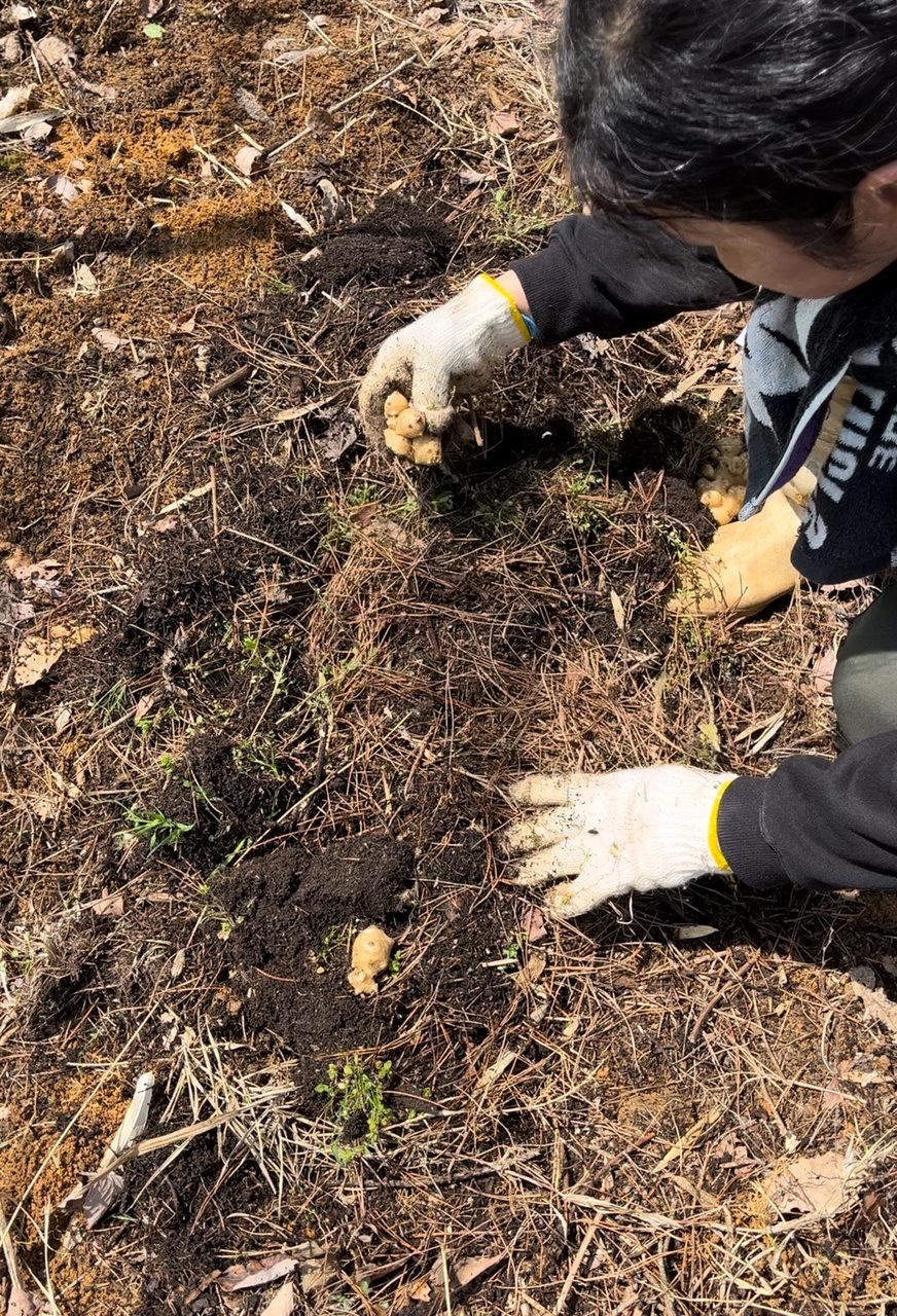 粘土層を掘り起こして、土を盛ってから、その上に菊芋を置きます。