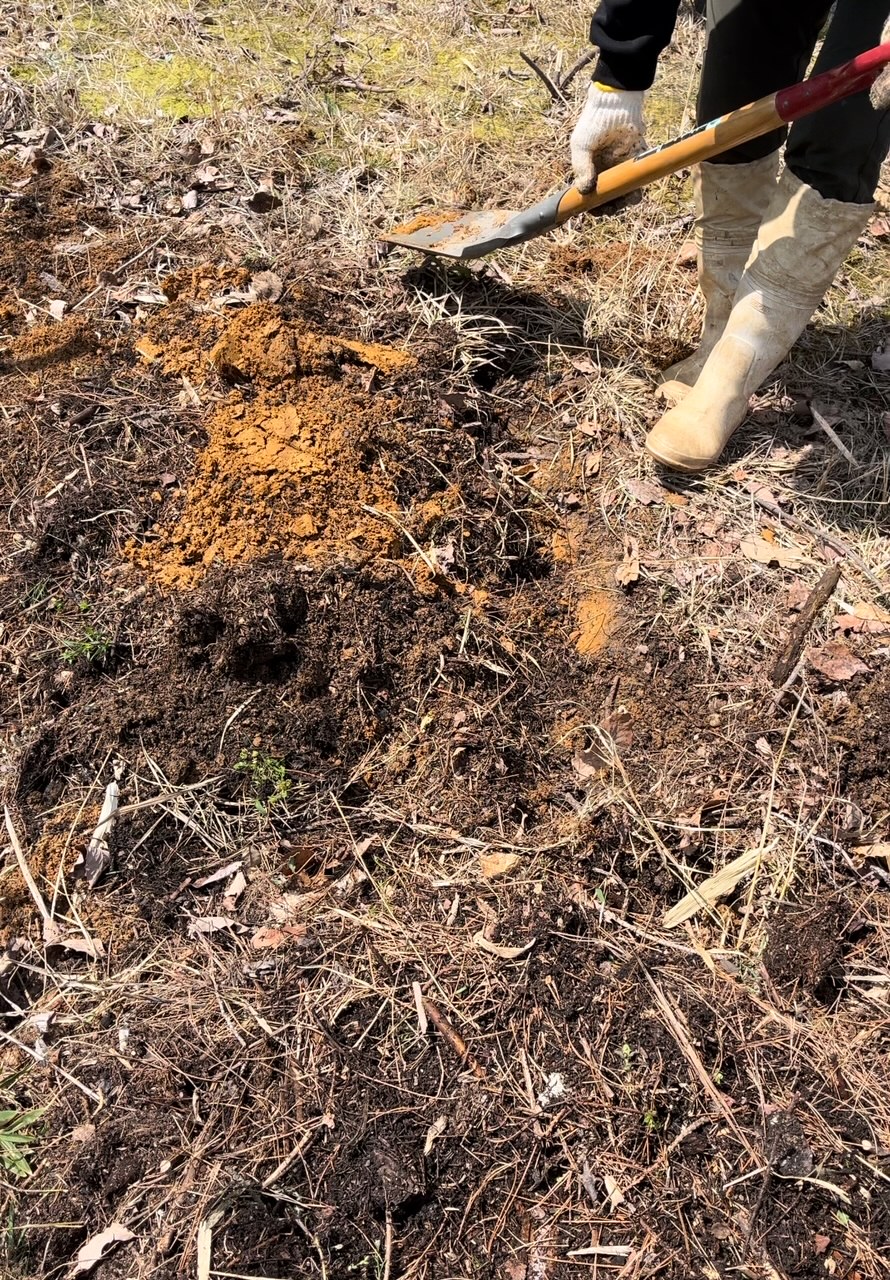 だけど、まだまだ硬い土。やはり、粘土層まで掘り上げて、枝葉を埋めないといけません。