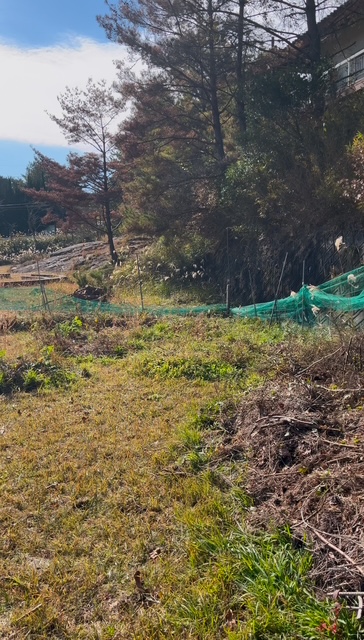 今回は、キャンプ場の返枝がネットに落ちてしまったので、まずは枯れた木を伐採します。コータ君も一緒に手伝ってくれました。モデルのような見た目とは裏腹に、切った太い幹を軽々持てる怪力!頼もしい。