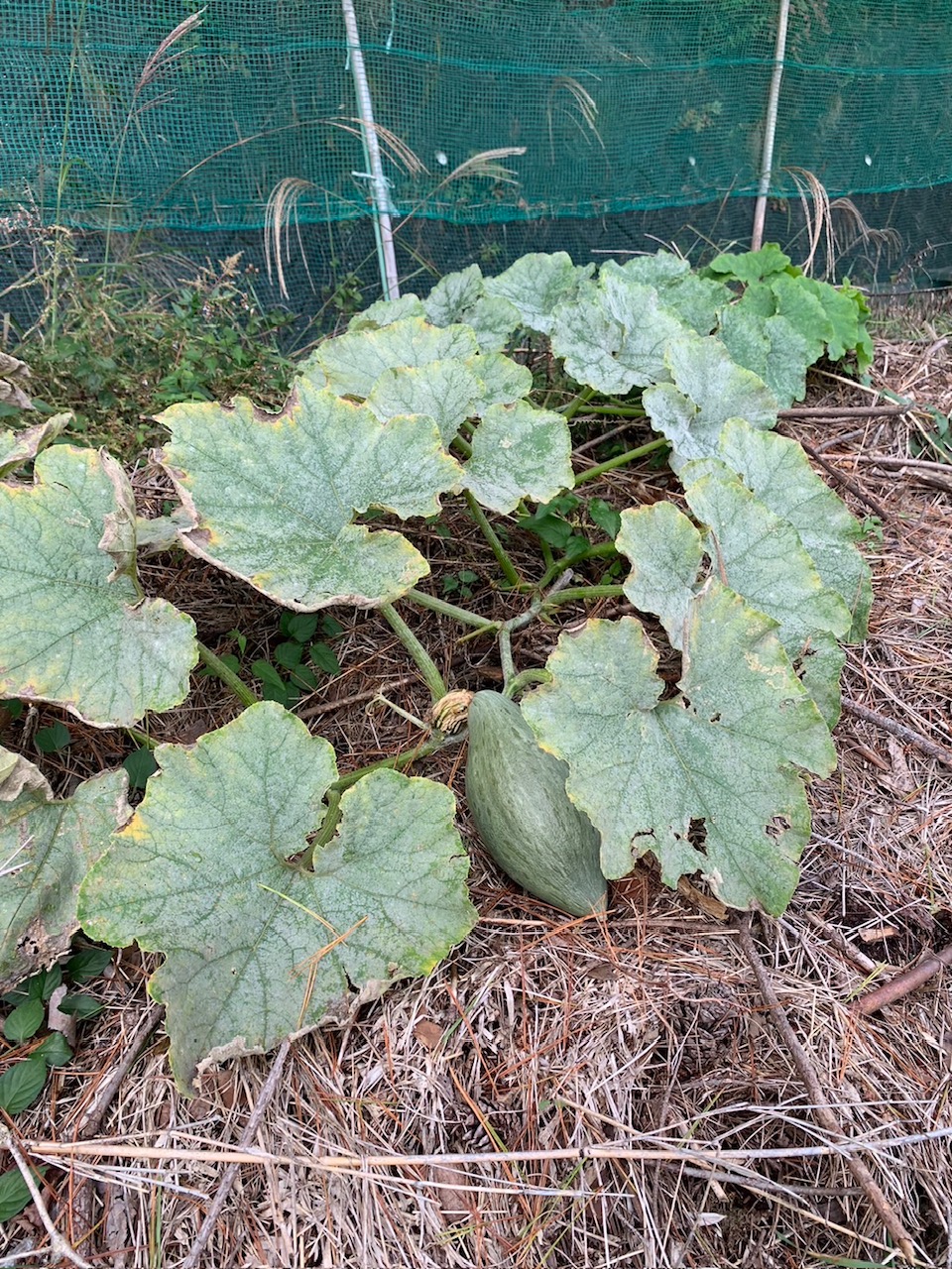 何とカボチャが!前年は枯れてしまい、今年もダメかな~と思っていた矢先、放っていた場所から立派なカボチャが実っているではありませんか。嬉しい変化です。水はけの悪かった、粘土の場所でも作れることが証明してくれました。