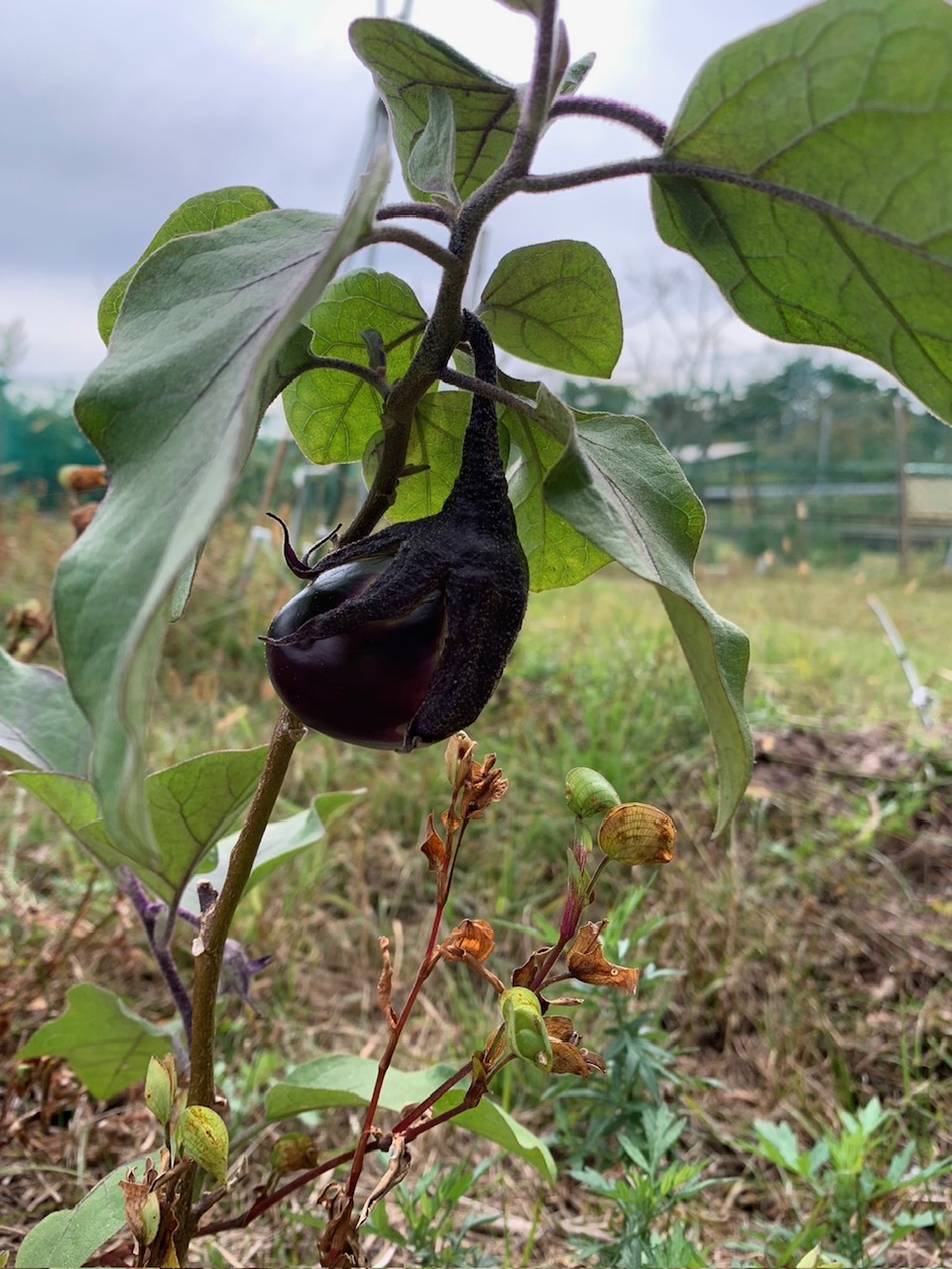 ナスも可愛らしく実ってくれました!お味噌汁に入れて食べてくれたみたいですが、アクもなく綺麗なままで美味しかったとの事です。
