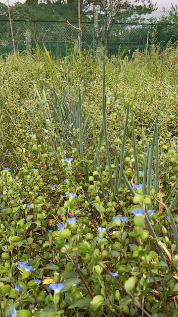 爽やかな草原の雰囲気。その中にあるネギが見えますか?