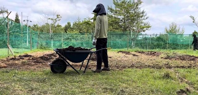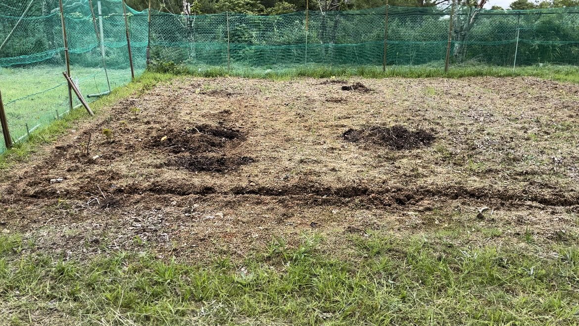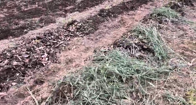 今回も土の上に腐葉土をのせていきます。野菜は見事に根付いてくれていますが、土がまだまだ出来ていないので、育ってくれるのでしょうか。