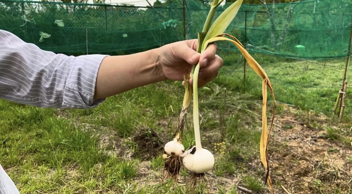 ジャンボニンニクを植えたはずなのですが、小さかったです。